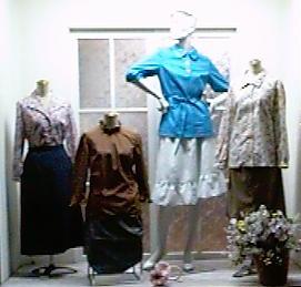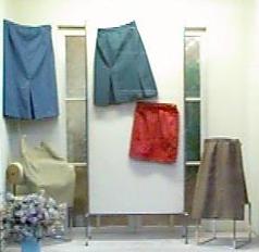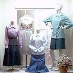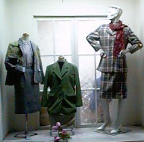 | 1999年度生の終了作品です。 | 4月新入生が初めて作ったスカートです。 何もかも始めての中ウィンドウディスプレイ は思いもしなかった勉強。 街の中を歩いていてもよく気にかかり楽し い毎日です。 |